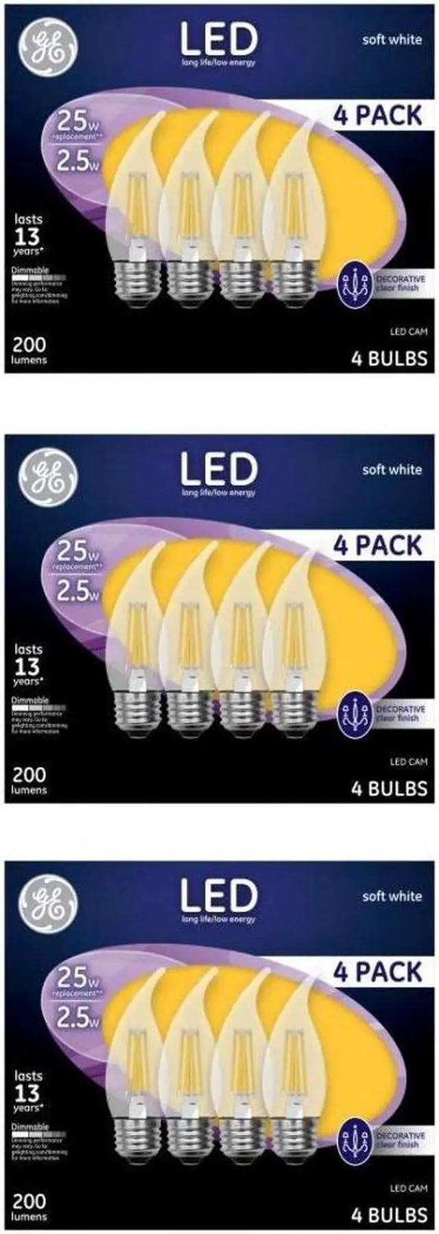 GE Lighting 2.5 watt, 200 lumen, Soft White 2700K, Medium Base LED Light Bulb, Dimmable
