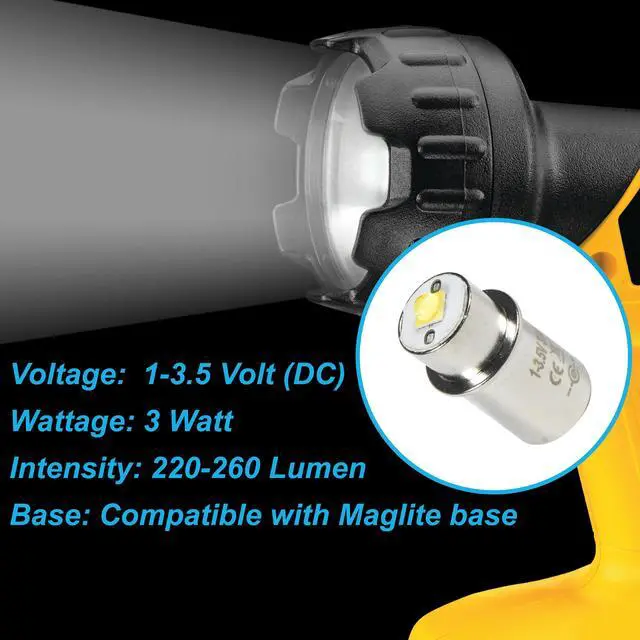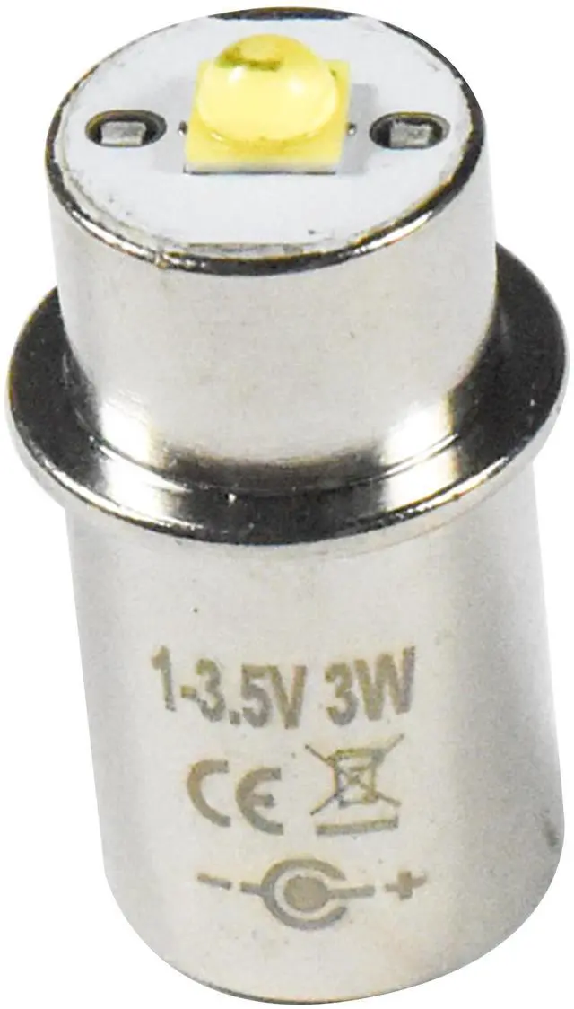 HQRP 3 Watt light bulb with High Power LED is a great upgrade your flashlight! High power and a high lumen rate (200lm! ) will allow you to replace the old light bulb in your flashlight, thus extending the battery life! Indeed, LED lights consume much less power than the standard incandescent bulbs or gas-bulbs in Mag-lite flashlights, and it will let you save on the purchase of new batteries! Wide voltage range of this bulb allows its use in many Mag-lite flashlights - from 2 to 3 cells of both D type and C type! A high lumen rate guarantees that your flashlight will be even brighter than it used to be! Ideally for long time operation, like camping, hunting, mining and other longtime operation!