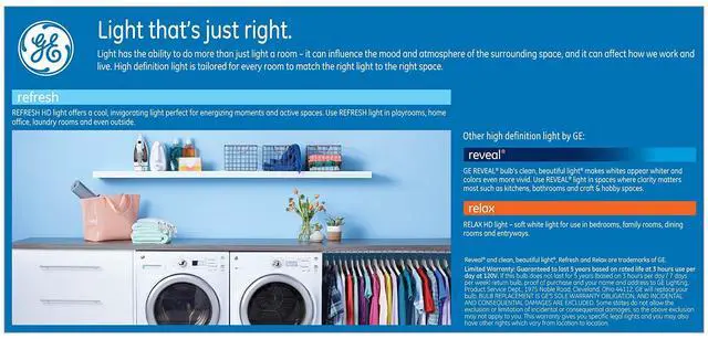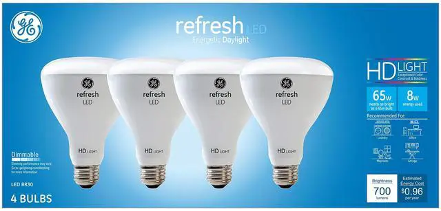 Standard GE LED bulbs. Refresh HD light offers a cool, invigorating light
