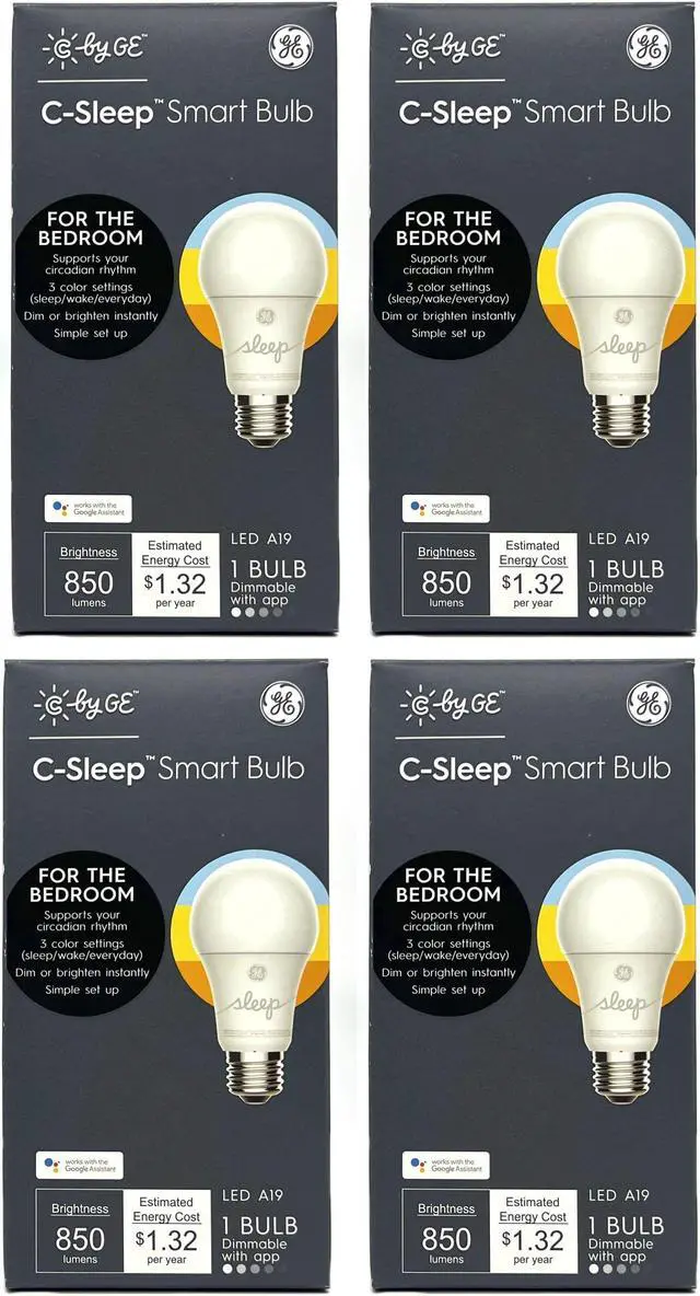 (case of 4) GE LED Smart Bulb, C by GE, Sleep Smart Bulb, 3 color settings, 11 watts, 850 lumens, adjustable color temperature, works with google assistant