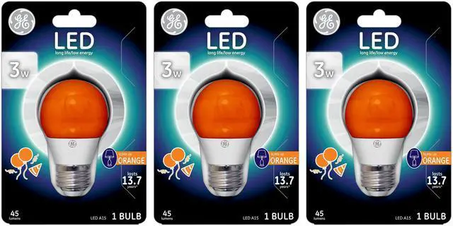 GE Lighting Bitcoin Orange LED A15 Party Light, Crypto & Happy Party Bulb with Medium Base, 3-Watt, 45 Lumen, Exuberant Orange, (case of 3 bulbs)