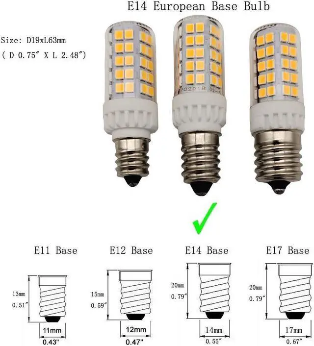Base Type: E14 (14mm 0.55",Not 12mm 0.47",Not 11mm 0.43")