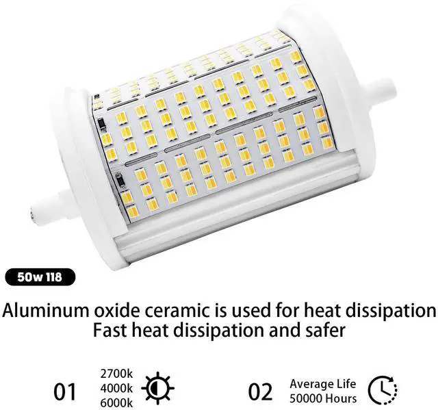 • Eco-friendly Led Lighting:r7s Led Bulb 118mm 500 Watt Replacement Light Save Up To 85% Energy With This 50w R7s Led Bulb Delivering 5600 Lumens, Designed To Replace High-power 300w-500w Halogen Bulbs Without Compromising Brightness.