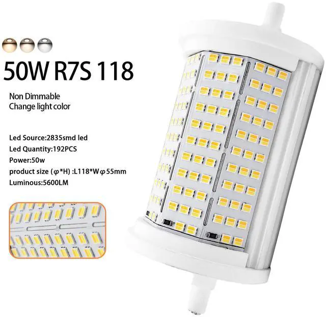 118mm 50w NO Dimmable bulb ideal for floor standing lamps, garde yard lights, Floor light, landscape lights, security lights, stage and studio lights, flooding light, warehouse light, Garage lights, and other outdoor indoor light, home, office, restaurants and stores, Schools, Landscape light.
