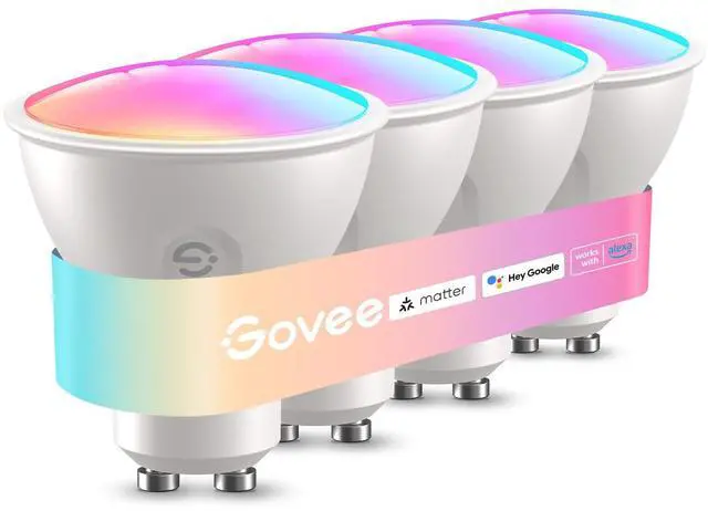 Govee GU10 Smart Bulb, Matter RGBWW Light Bulb Work with Alexa, Google Assistant, WiFi & Bluetooth Color Changing MR16 LED Bulbs, 64 Dynamic Scenes, Syncs with Music, 4 Pack, 400LM, GU10 Base