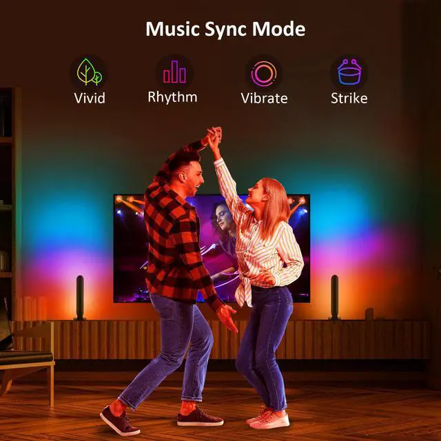RGB Music Sync Light BarThe LED light bar has a music synchronization function, which flashes the lights synchronously according to the audio frequency of your phone music, and the controller is embedded with a high-sensitivity voice sensor, outside movies and games audio frequencycan also control the color change of the light.