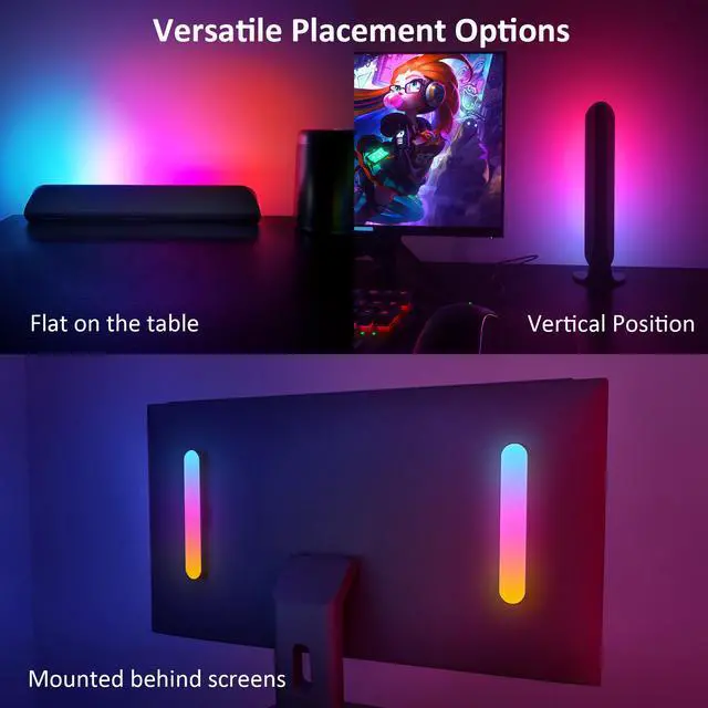 Multiple Scene ModesThe RGBW+IC light bar has 16 million colors to choose from, 256 color modes, 10 scenarios display modes, 0-100 levels brightness and speed adjustment has superb visual effects. LED lights bar Enhance your gaming, movie, and musical experiences with vibrant lighting.