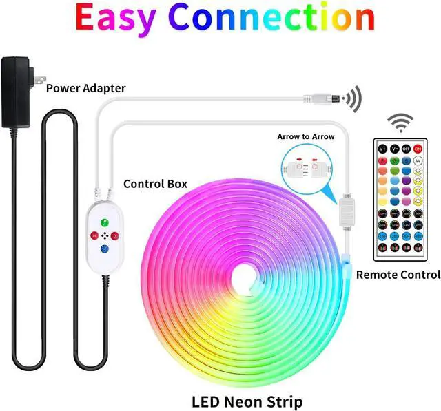 Multiple Color: The LED neon light strip is composed of 1620 LEDs the upgraded LED and side brightness design make the LED strip brighter than normal LED strips. The 120 degree projection range provides large lighting coverage with very uniform light. You can pre-select your favorite color or mode through the mobile APP or remote control.