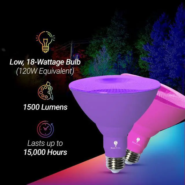 Offering outstanding energy efficiency, dimmable lighting and enjoyable colored illumination in one package, this 2-pack of LED Par38 Flood Colored Light Bulbs is a must-have. Furthermore, LED bulbs are a safer alternative. They are free of harmful mercury and won't release any hazardous gasses, creating a healthy environment for you and your family. Plus, there’s no need to worry if a bulb breaks or about having to recycle it.