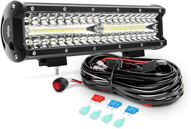 12 Inch 300W Triple Row Flood Spot Combo with Wiring Harness Kit-1 Lead