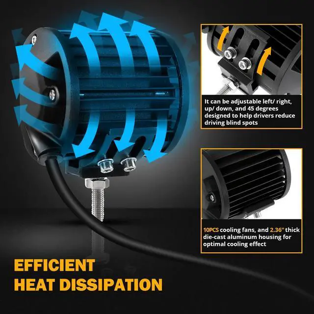 High performance die-cast aluminum alloy heatsink designed fast and effectively extend the lifespan of the light pod to over 50,000 hours
