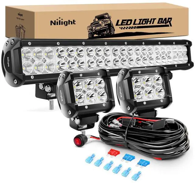 20Inch 126W Led Light Bars 2Pcs 18W Led Pods with Wiring Harness Kit-3 Leads