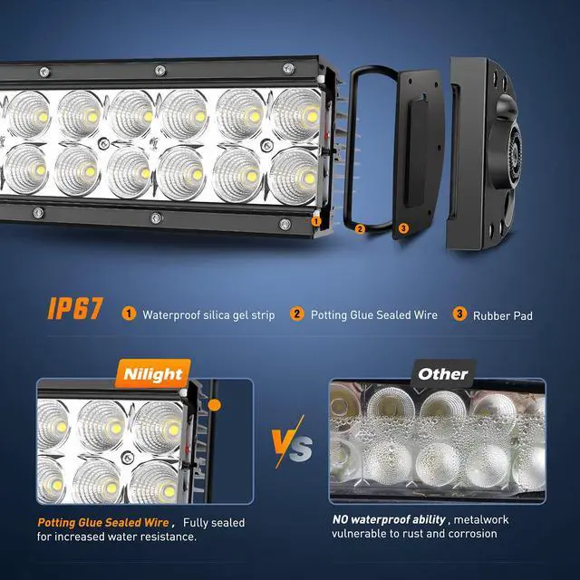 The waterproof rubber pad and silicone sealing strip as the second protection the light better handle different kinds of weather