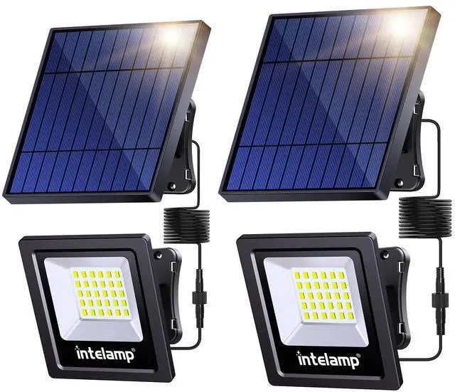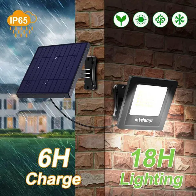 intelamp solar flood light can light up 18 hours after 6 hours directly sunshine charging.