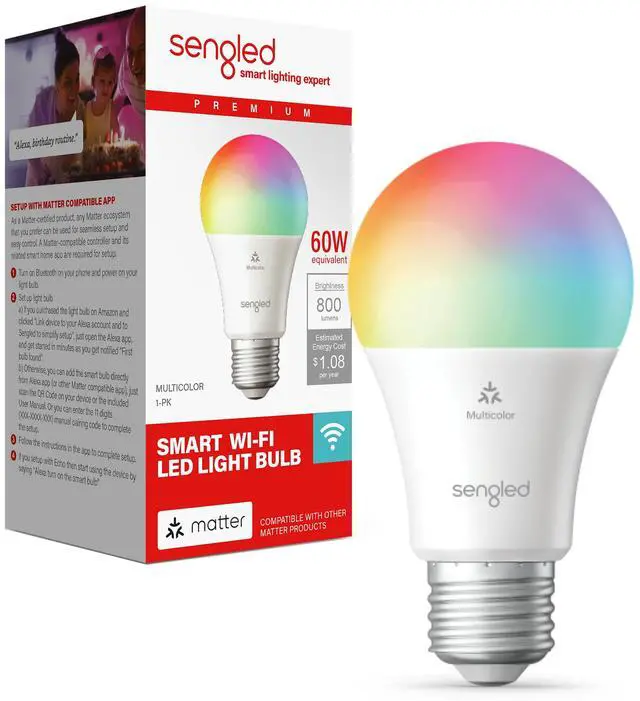Matter LED Smart Light Bulb (A19), Multicolor, Compatible with Alexa, 60W Equivalent, 800LM, Instant Pairing, 1-Pack