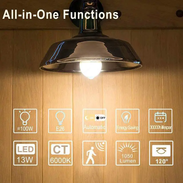 | Special Feature | Auto on/off e26 bulb, Dusk to dawn sensor, Motion Sensor, Super bright |