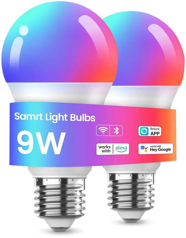 LED Smart Light Bulbs, Color Changing Dimmable & Timing Smart WiFi and Bluetooth Bulb, Compatible with Alexa and Google Assistant, RGBWW A19, 9W 800 Lumens, Music Sync, Voice Control (2 Pack)