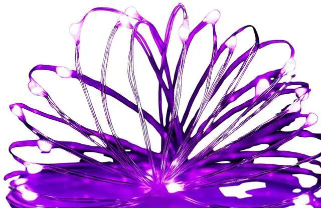 Illuminate your space with Elegani's 100 LED Silver Copper Fairy String Lights, featuring Purple micro LEDs spaced 4 inches apart on a 33-foot flexible silver-coated copper wire. These plug-in lights provide a steady 360° viewing angle, ensuring ambient illumination that enhances any setting. The durable and bendable wire allows for creative installations, making them ideal for decorating bedrooms, parties, weddings, or holiday displays. Suitable for both indoor and outdoor use, these lights add a touch of elegance and warmth to your décor
