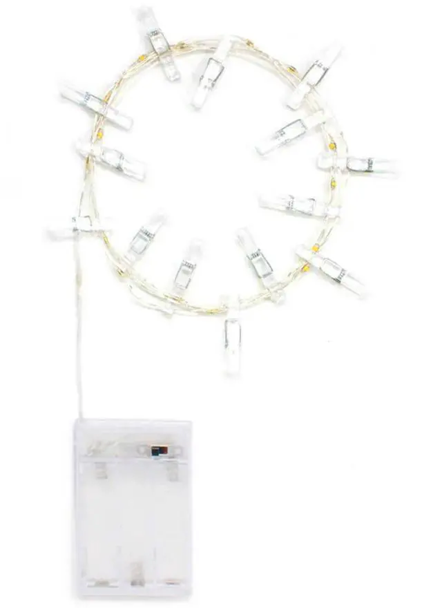 Add a personal touch to your space with this 15 LED Mini Photo Clip Fairy Light. Designed on flexible silver copper wire, it includes 15 clear photo clips that can be adjusted to your liking, making it perfect for displaying memories in your bedroom, dorm room, or creative space. The warm white LED lights provide a cozy glow, enhancing your photos or artwork. The 6-foot total length includes a 5-foot lighted section and a 1-foot lead cord, offering just the right length for headboards, bookshelves, or gallery walls.