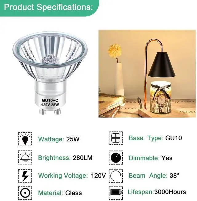 - Our GU10 halogen 25w bulbs not only great replacement for candle warmer light bulbs, wax melt bulbs, but also great replacement for range hood light bulbs, track light bulbs and recessed light bulbs.