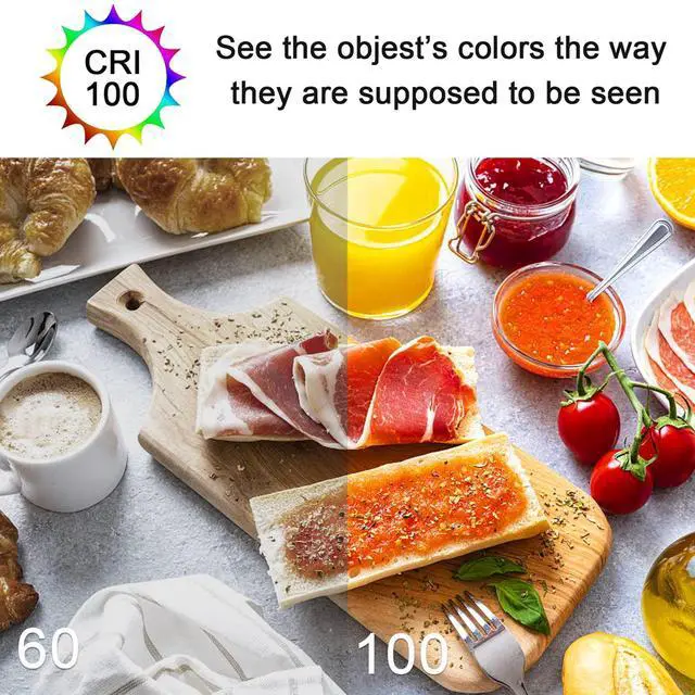 - CRI100 (color rendering index), makes you see the colors the way they are supposed to be seen.