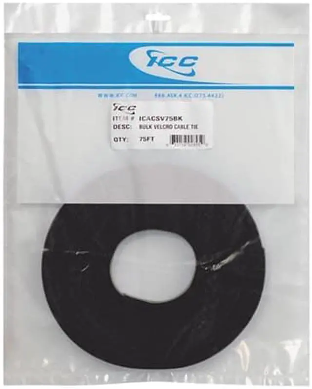 Cable Tie-Accessories: ICC Fasteners 9 in. Tie ICC-ICACSV75BK-ICC ICACSV75BK Velcro Bulk Cable Tie 75 ft Length Polyethylene Hook Nylon-ICC ICACSV75BK Velcro Tie Bulk 75ft - Black