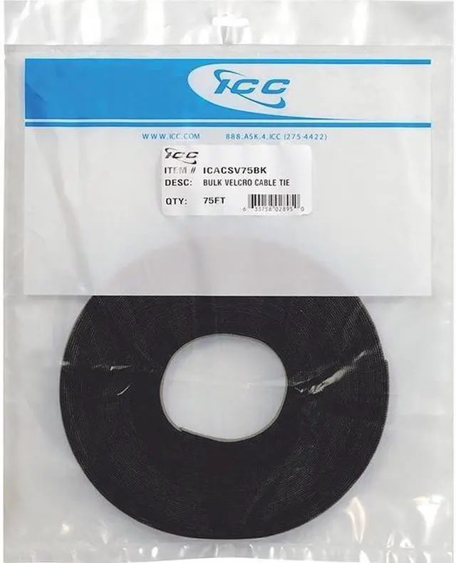 The ICC-ICACSV75BK is an ICC Velcro tie item. This product is designed to facilitate the fastening of cables securely. The unit makes cable management and color-coding identification easy and quick. Also known as -ICACSV75BK Bulk Velcro Cable Tie-ICC ICACSV75BK Bulk Velcro Cable Tie - Cable Tie - Black-ICC Velcro Tie Bulk 75ft - Black ICC-ICACSV75BK-ICC ICACSV75BK Bulk Velcro