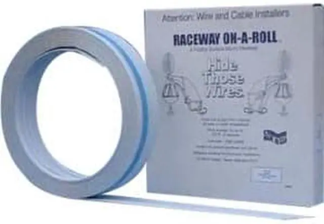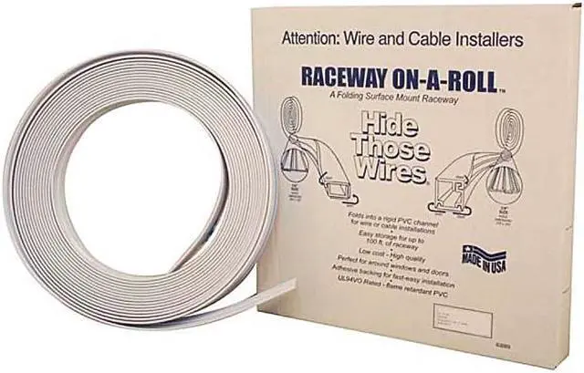 Low profile and paintable surface allow this surface mount raceway to be used on installations where minimum presence is required. Just rollout the length you need, cut with ordinary scissors, and fold into a rigid channel shape. Then remove the tape backing and apply to clean dry surface. Load wires or cable and snap shut. 4 sizes. Knowing that up to 100 feet of raceway packed in a box the size of a pizza box is always on hand is comforting also.