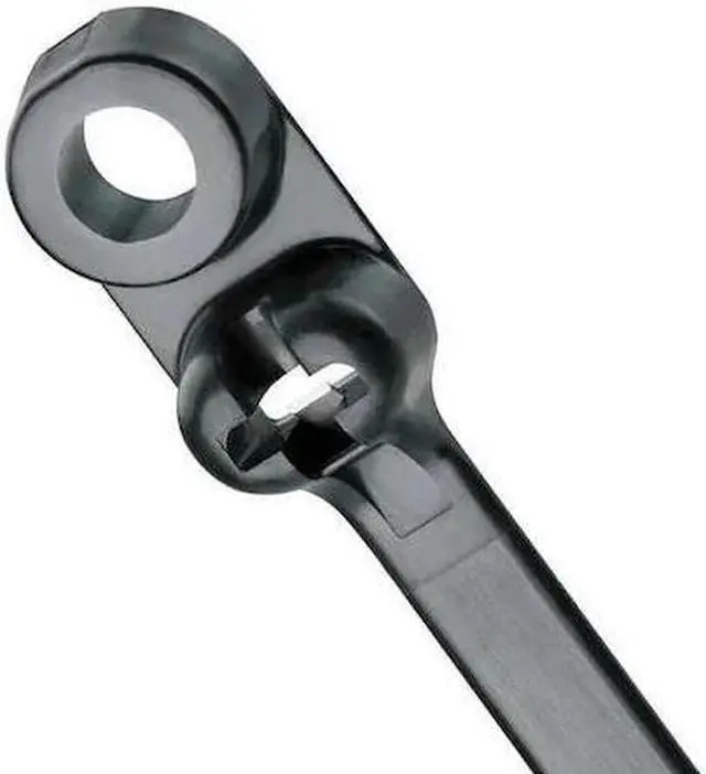 Cable Tie, Mountable, Actual Length 15.5 in, Width 0.27 in, Nominal Length 15 1/2 in, Locking Style Stainless Steel Barb, Color Black, Basic Material - Cable Tie Nylon, Tensile Strength 120 lb, Halogen-Free, Low-Smoke, UV Light Resistant, Weather Resistant, Heavy Duty, Mounting Method Screw Mount, Nominal Max. Bundle Dia. 4 in, Temp. Range -76 Degrees to 185 Degrees F, Number of Straps 1, Flame Retardant No, Metal Detectable No, Outdoor Use Yes, Plenum Rated No, Screw Mount Hole Size 0.25 in.