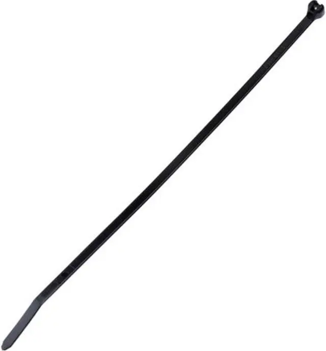 Cable Tie, Standard, Actual Length 14.2 in, Width 0.09 in, Nominal Length 14 1/2 in, Locking Style Stainless Steel Barb, Color Black, Basic Material - Cable Tie Nylon, Tensile Strength 18 lb, Halogen-Free, Low-Smoke, Plenum Rated, UV Light Resistant, Weather Resistant, Miniature, Nominal Max. Bundle Dia. 4 in, Temp. Range -76 Degrees to 185 Degrees F, Number of Straps 1, Flame Retardant No, Metal Detectable No, Outdoor Use Yes, Plenum Rated Yes, UL Type 2, Thickness 0.05 in.