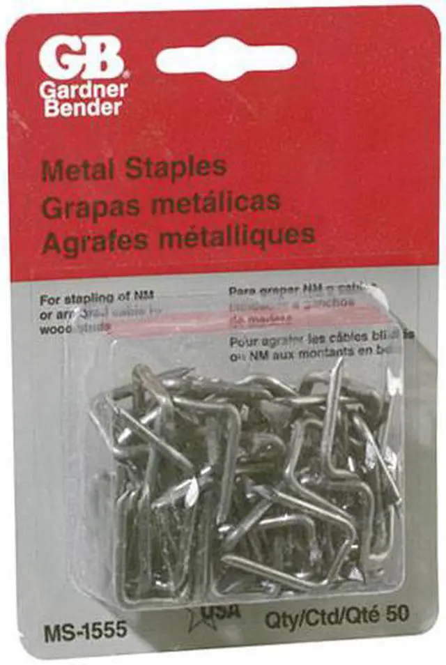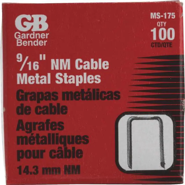 9/16 In. x 1-1/8 In. cable staple ideal for use with armored and non-metallic cable 3-wire Model No. 14-12-10. 100 staples per UPC coded box.