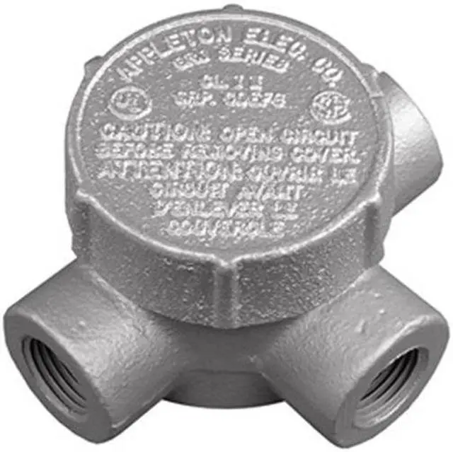 Conduit Outlet Body, Overall Width 2 7/16 in, Overall Height 2 7/8 in, Overall Length 3 7/8 in, Trade Size 1/2 in, Compatible Conduit Trade Size 1/2 in, Hub Size 1/2 in, Compatible Cover GRJK-S, GRJK-SC, Iron, GRJ, Compatible Conduit Type Threaded IMC, Indoor/Outdoor Usage Indoor/Outdoor, Back Type Round, Body Capacity 7.3 cu in, Body Style T, Body Type Conduit Outlet Body, Color Gray, Connection Orientation Multi-Angle, Connection Type Threaded, Cover Included Yes. This item has been restricted from sale in the following state (s): []