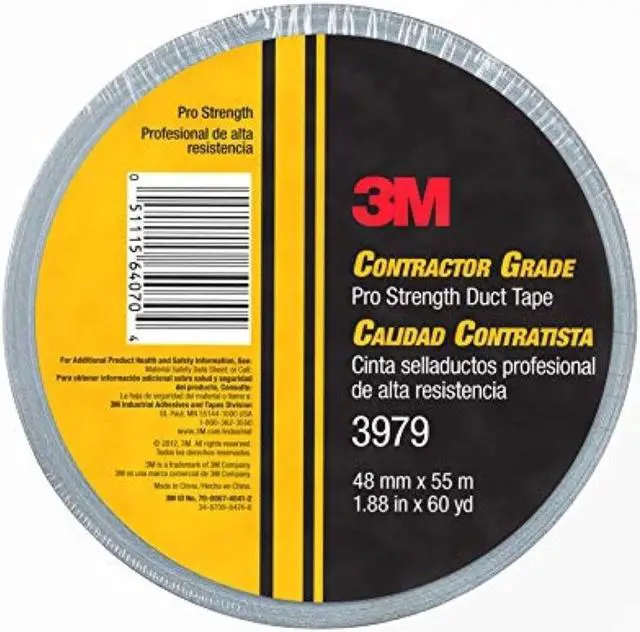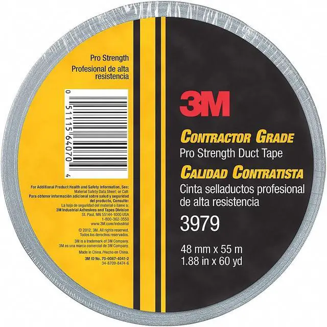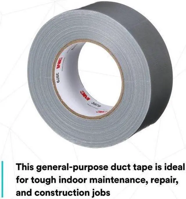 Tape Thickness 7.9 mil, Tape Brand 3M, Common Industry Construction, Indoor Only, Imperial Tape Length 60 yd, Imperial Tape Width 1 7/8 in, Maximum Tape Performance Temperature 200 Degrees F, Continuous Roll, Series 3979, Tape Backing Material Polyethylene Coated Cloth, Tape Adhesive Material Rubber, Tape Sub-Type General Purpose Duct Tape, Duct & Repair Tape, Adhesion to Steel 68 oz/in, Metric Tape Length 54.8 m, Metric Tape Width 47.6 mm, Tape Adhesive Format Single-Sided