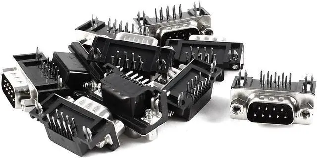Unique Bargains 10pcs DB9 D-bus 9Pin Male Right Angle PCB Mount Socket Connector