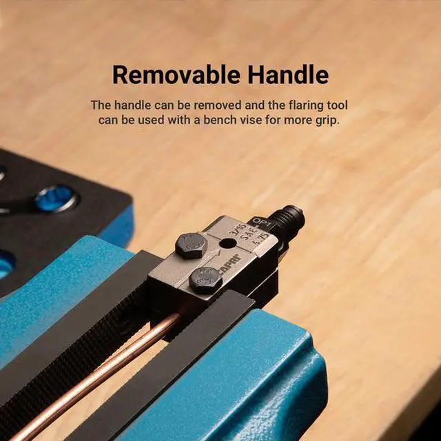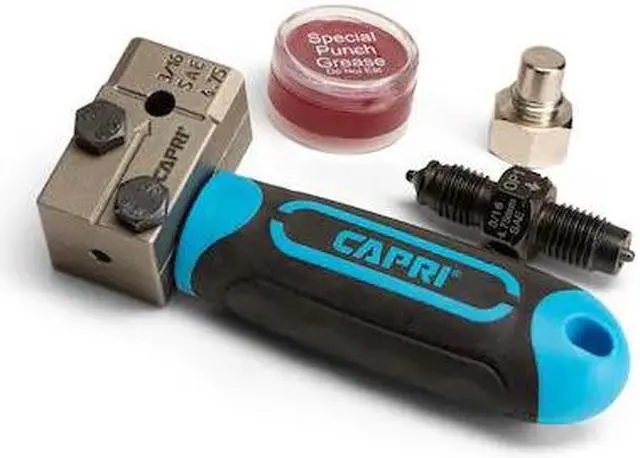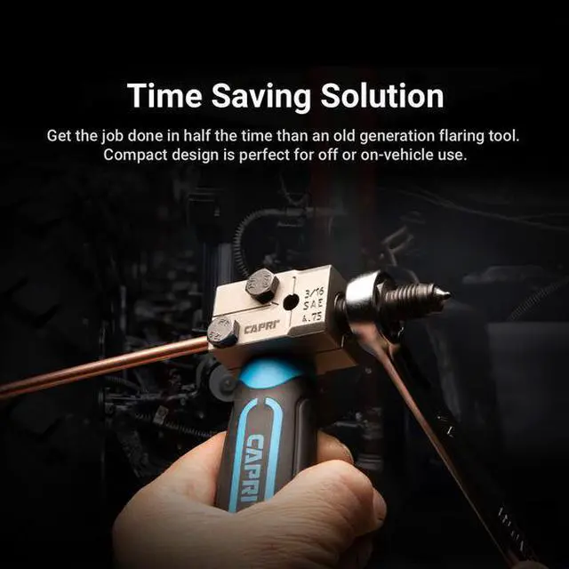 California Proposition 65: This product contains a chemical known to the State of California to cause birth defects or other reproductive harm. The Capri Tools Double Flaring Tool lets you create perfect 45-degree SAE double flares in half the time compared to old generation flaring tools. Its compact and portable design lets you work both off vehicle and on vehicle, even in tight spots. The die can be detached so you can also work with a bench vise for more grip. The tool works flawlessly with 3/16 in. steel, nickel, and copper tubing. This is an all-in-one tool. A 10 mm and a 17 mm wrenches are the only other tools you need to start making perfect double flares.