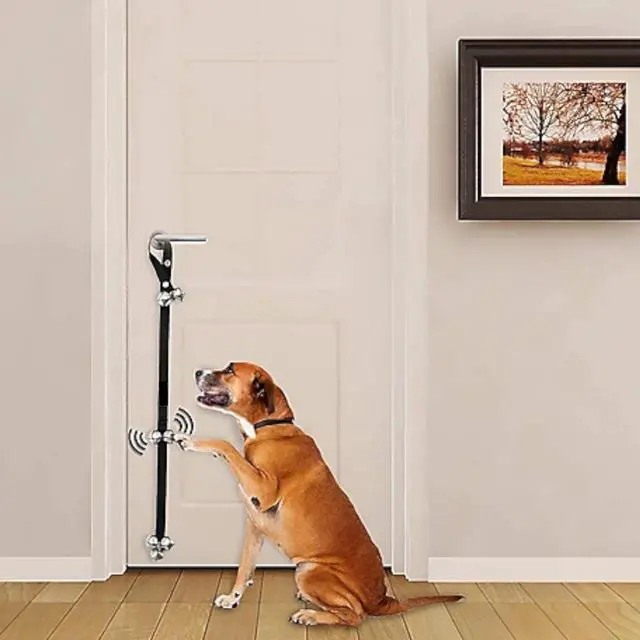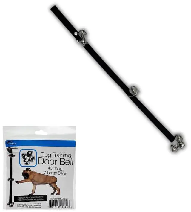 The 40" Dog Training Door Bell helps your dog communicate with you rather than barking or scratching on your doors and furniture. Hang this bell on your door handle or somewhere your dog or puppy can reach. Train your dog with treats to ring the bell with their paw or head. Teach them to let you know they need to outside by ringing the bells. Great for new puppy parents or professional dog trainers. This dog training tool is made with woven polyester and has 7 silver bells.