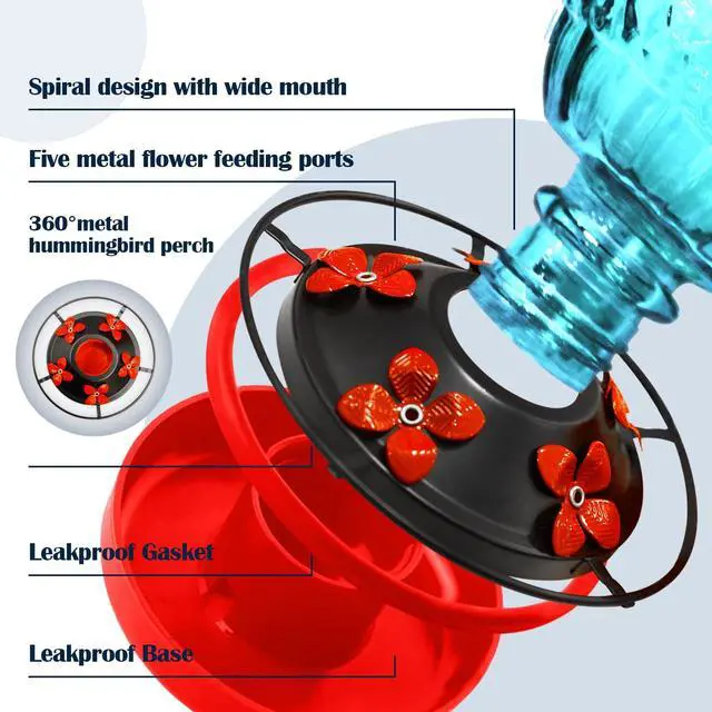 Glass Hummingbirds Feeder for Outdoors Hanging,25 OZ Humming Birds Feeder for Outside with Feeding Ports&Built-in Ant Moat,Hummingbird Gifts,Gardening gifts for women