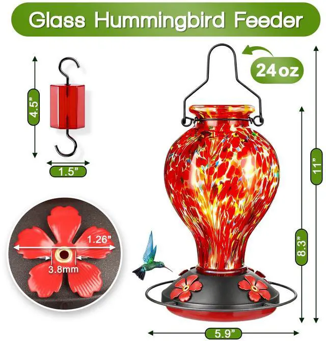 Tegarbed 24oz Hand Blown Glass Hummingbird Feeder