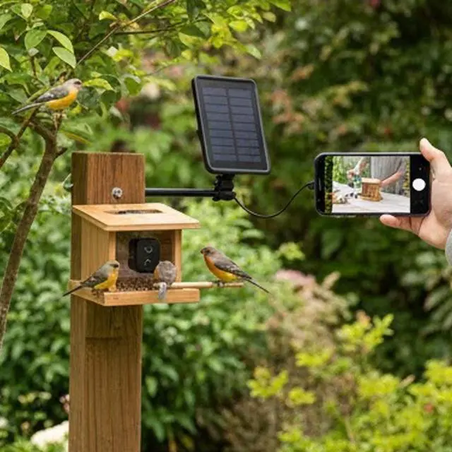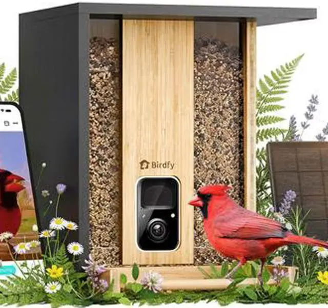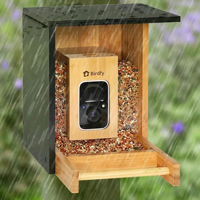 Bring the beauty of nature right to your phone with this Birdfy Bamboo Bird Feeder featuring an integrated FHD camera and solar power panel. Watch hummingbirds and other small birds up close as the feeder records automatically and sends alerts directly to your device. Designed with an ant moat and solar-powered operation, this feeder ensures uninterrupted viewing while keeping pests away. Perfect for bird enthusiasts and nature lovers looking to capture every visit in crisp, high-definition detail.