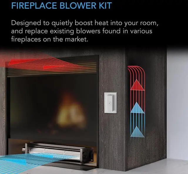 A quiet blower fan kit designed to improve your fireplace efficiency by effectively circulating heat.10-speed wireless remote; smart digital PWM controls from silent, gentle breezes to high-velocity airflow.Built with a DC motor that is quieter, more energy-efficient, and has greater lifespan than AC blowers.