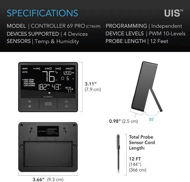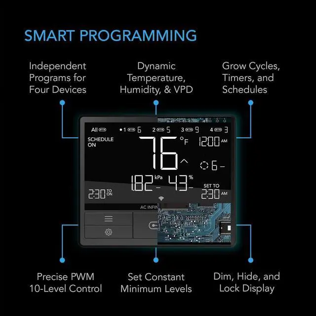 • A digital controller designed to equip AC Infinity devices with smart controls to produce the optimal environment.
