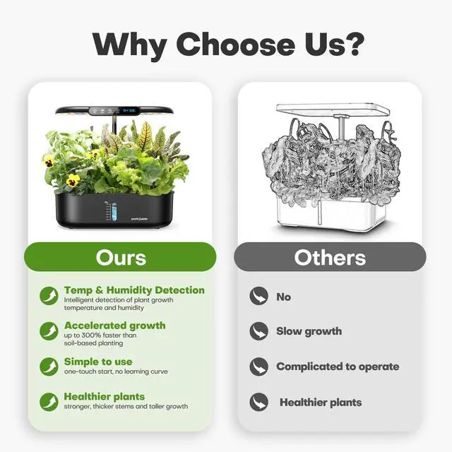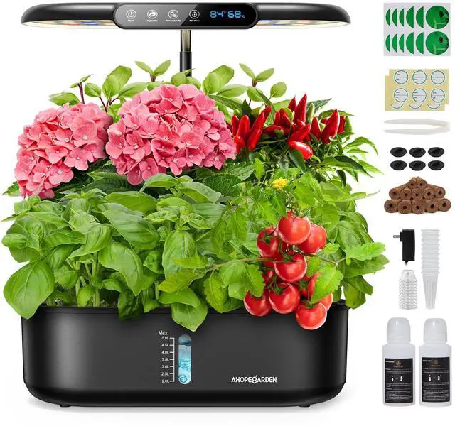 Hydroponics Growing System kit: Indoor Herb Garden - 12 Pods Plant Germination Kit with LCD Display and LED Grow Light, Smart Temp & Humidity Detection, Planter Grower for Fresh Vegetables