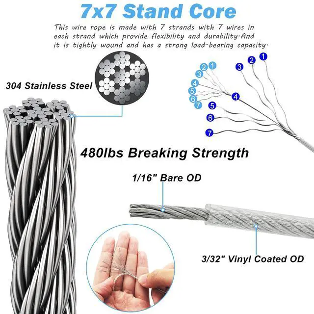- This wire cable is made with 7 strands with 7 wires in each strand which provide flexibility and durability.