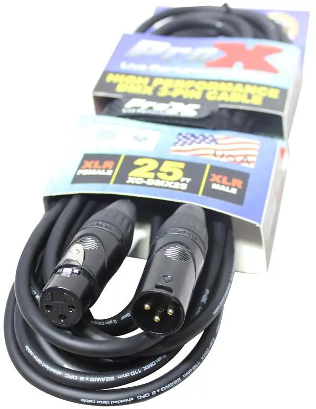 The versatility of the ProX XC-DMX25 cable makes it a must-have for professionals who demand the best in connectivity. Its 25-foot length provides ample reach for complex setups, and the reliable 3-pin XLR connectors ensure a secure link between devices with male and female DMX outputs/inputs. Remember, not all cables are created equal. Twisted pair DMX data transmission cables are specifically designed for DMX applications and are not suitable for audio use. Conversely, audio cables should not be used for DMX data as their specifications differ significantly. For optimal performance and reliable connections, it's essential to choose the correct cable type, like the ProX XC-DMX25, for your professional audio and video needs.
