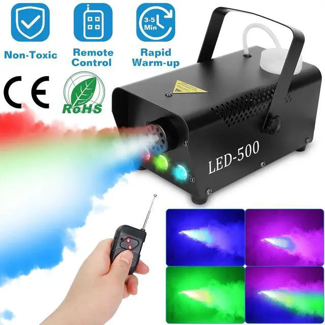 - Remote Control & Heat Protection:The fog machine with lights and LED remote control. You could turn on/off the fog machine for easy use. Besides,in-built with temperature control and prevent the machine from overheating or burning-out.