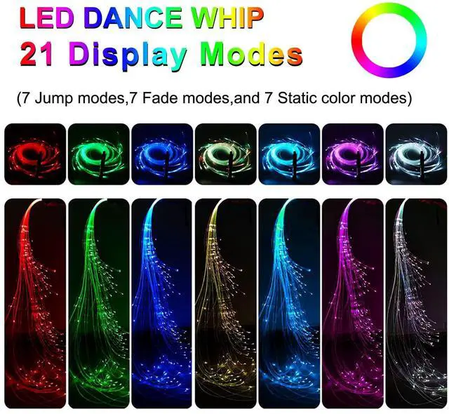 Dance Whip LED Fiber Optic Whip 6ft Rechargeable Pixel Whip with 7 Colors and 4 Glowing Modes, Flow Perfect for Dance, Parties, Gift
