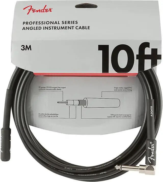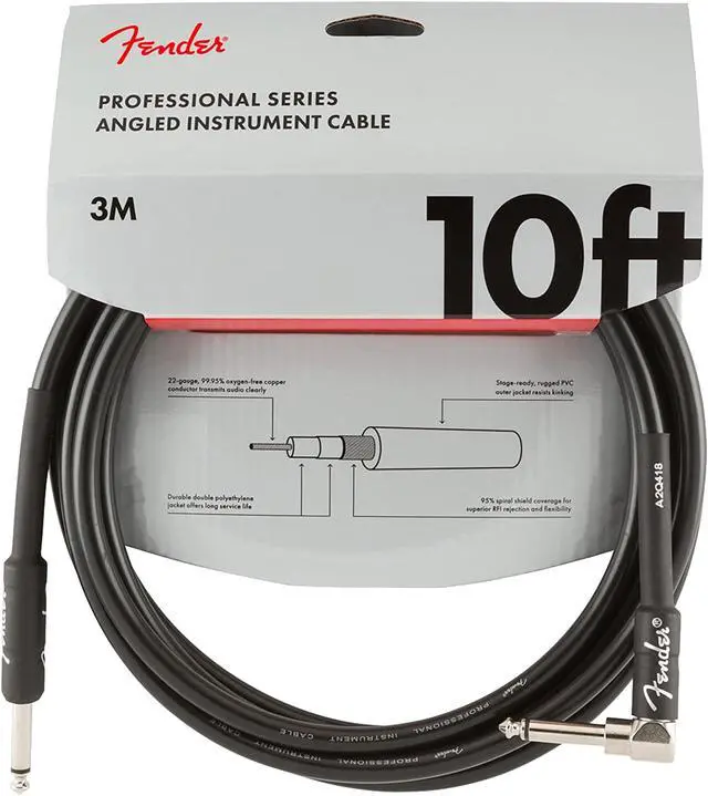 Straight on one side, angled on the other. Ideal for LP guitars and others. Road-reliable and flexible, Fender Professional Series cables boast a thick gauge with high-quality components that transparently retain your tone without getting in the way. Sporting quiet and resilient spiral shielding, these cables are engineered to avoid twisting, kinking and any "physical memory. " On stage or in the studio, plug in and play with creative confidence and peace of mind.