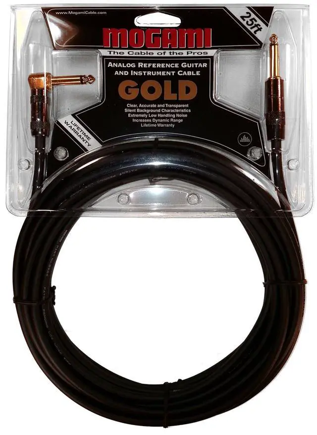 Mogami Gold Instrument 25' 1/4" Male to 1/4" Right Angled Male Cable for Keyboard/Guitar