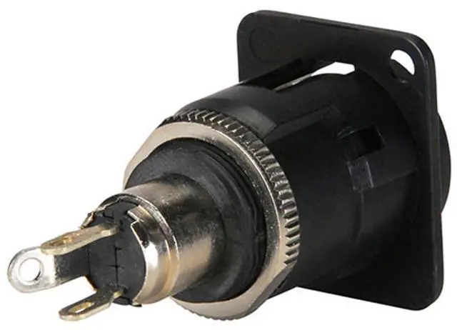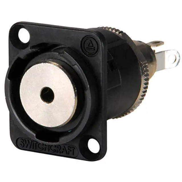 The Switchcraft 3.5 mm TS to 1/8" Mono Solder Contact Black Jack is a complete line of audio, video and data connectors built into standard panel-mount XLR housings. Custom combinations of this jack can be quickly loaded into any of Q-G Series panels. Once mounted, connecting your equipment to the back of an EH Series connector is fast and easy. Most jacks are feedthru, which means standard cabling is simply plugged into the back of your gear, then plugged into the back of the EH Series connector. This jack is available individually bagged with 4-40 mounting screws.