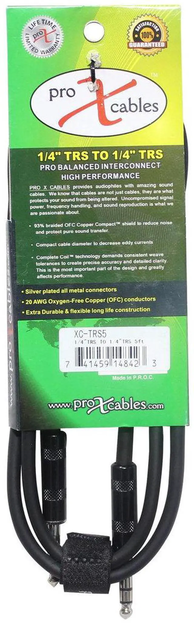 ProX 1/4" TRS to 1/4" TRS Cable, 5'